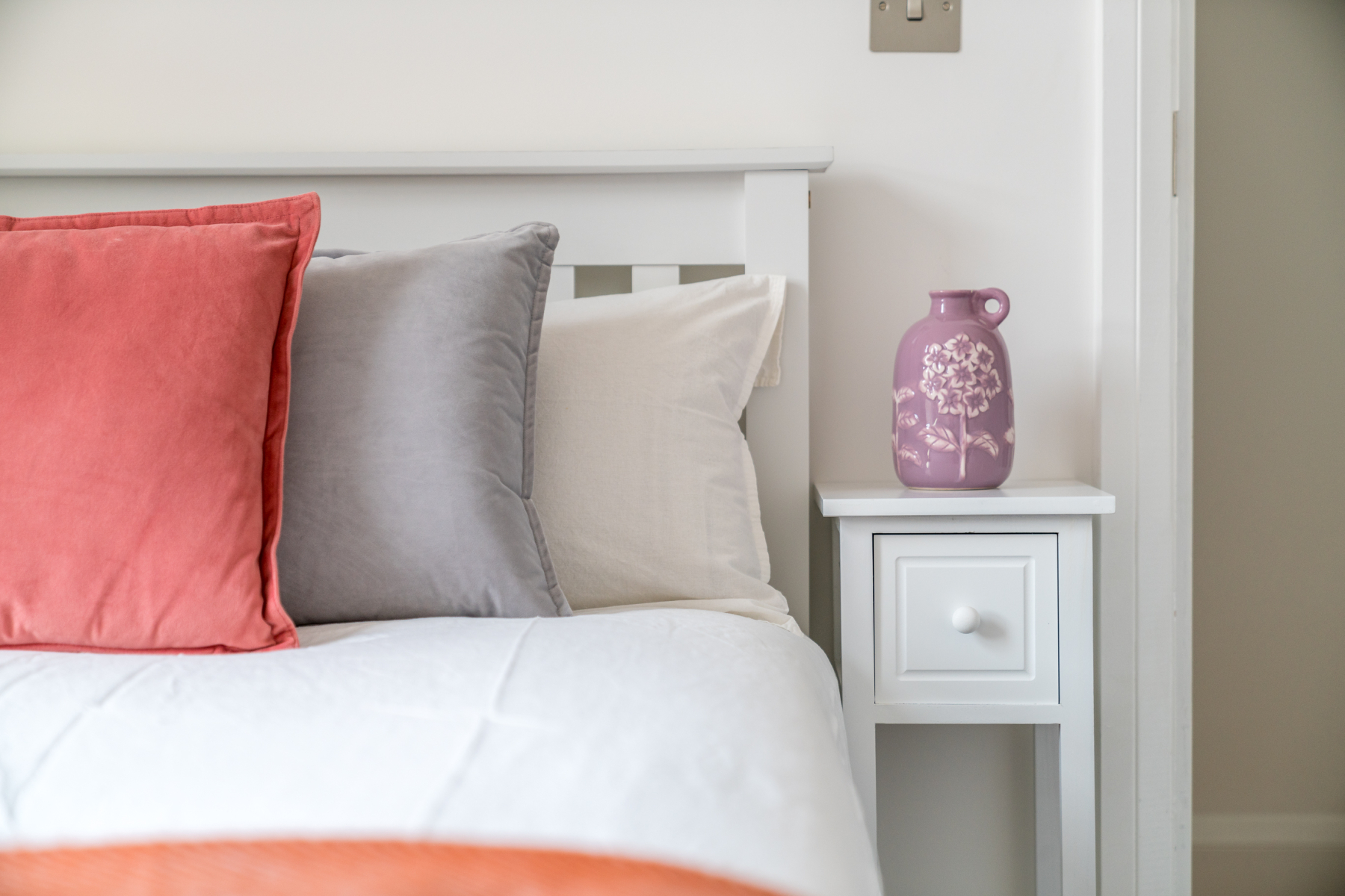 The room is located on the first floor facing to the rear garden, skilfully furnished and comes with a comfortable double bed with plenty of underbed storage, wardrobe, bedside table and desk with chair.