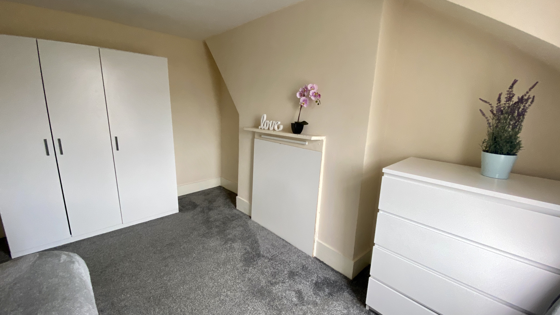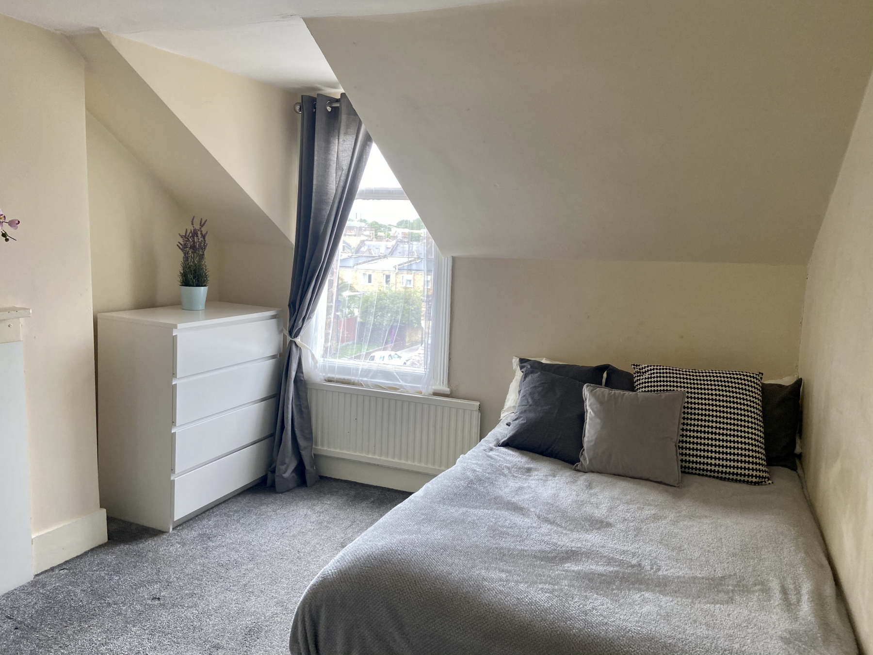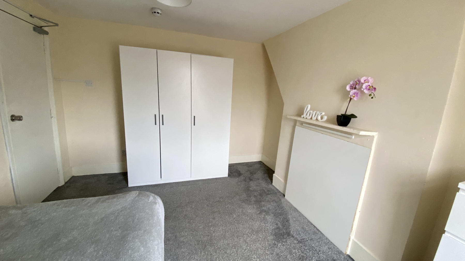 The available room is situated on the second floor facing to the rear garden. Moreover, this bright room is skilfully furnished and comes with a comfortable double bed, three door wardrobe and chest of drawers.